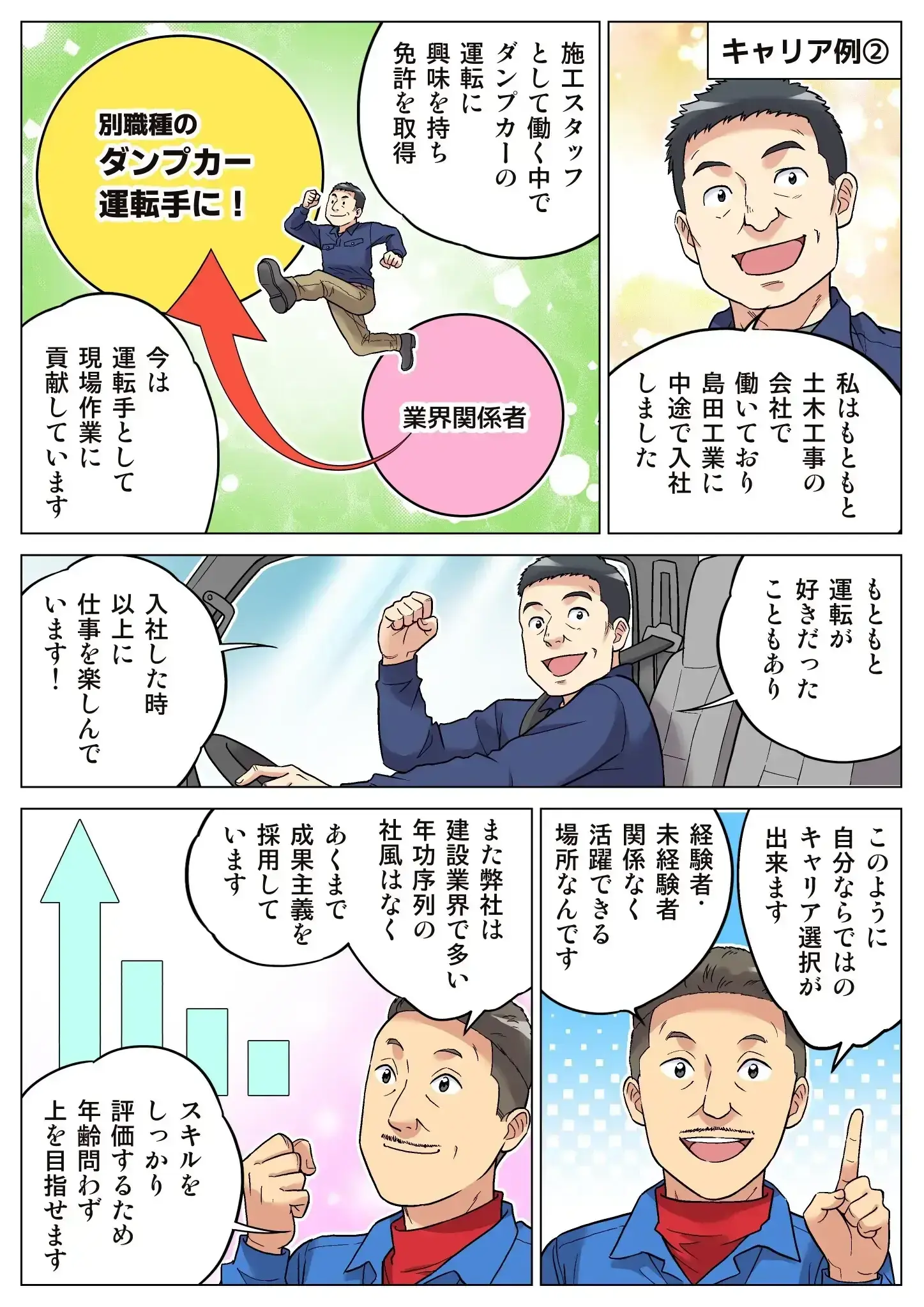 島田工業での評価は完全な実力主義に基づいています。成果や貢献が評価され、実力が反映される環境が整っています。公平で透明性のある評価体制が、従業員のモチベーションを高め、働きがいを感じさせています。