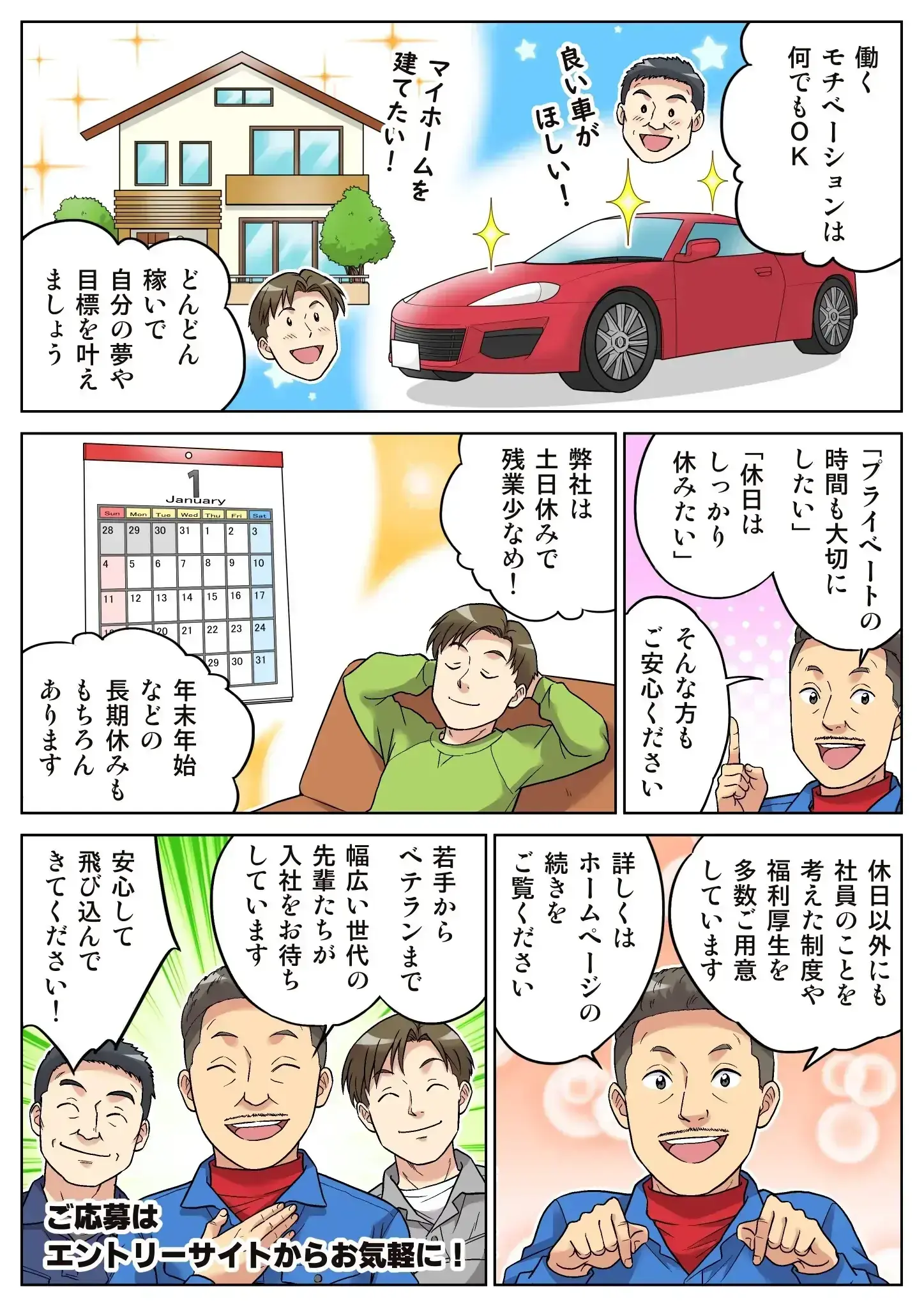働く環境の整備と従業員のプロフェッショナリズムの向上を目指し、制服や必要な工具を支給しています。入社前に買いそろえていただく必要はありませんので、ご安心ください。